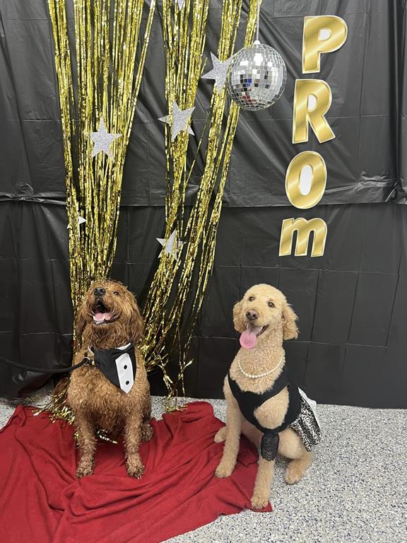 The students at Doggy Day Care got their heads together and decided they wanted to be like all the other kids on the block – and have a spring prom! So they came up with a theme, started planning the decor, set a date, and told their parents. They rented tuxes, shopped for the very best gowns, got their nails and hair done, and – well, take a look at all the images below.